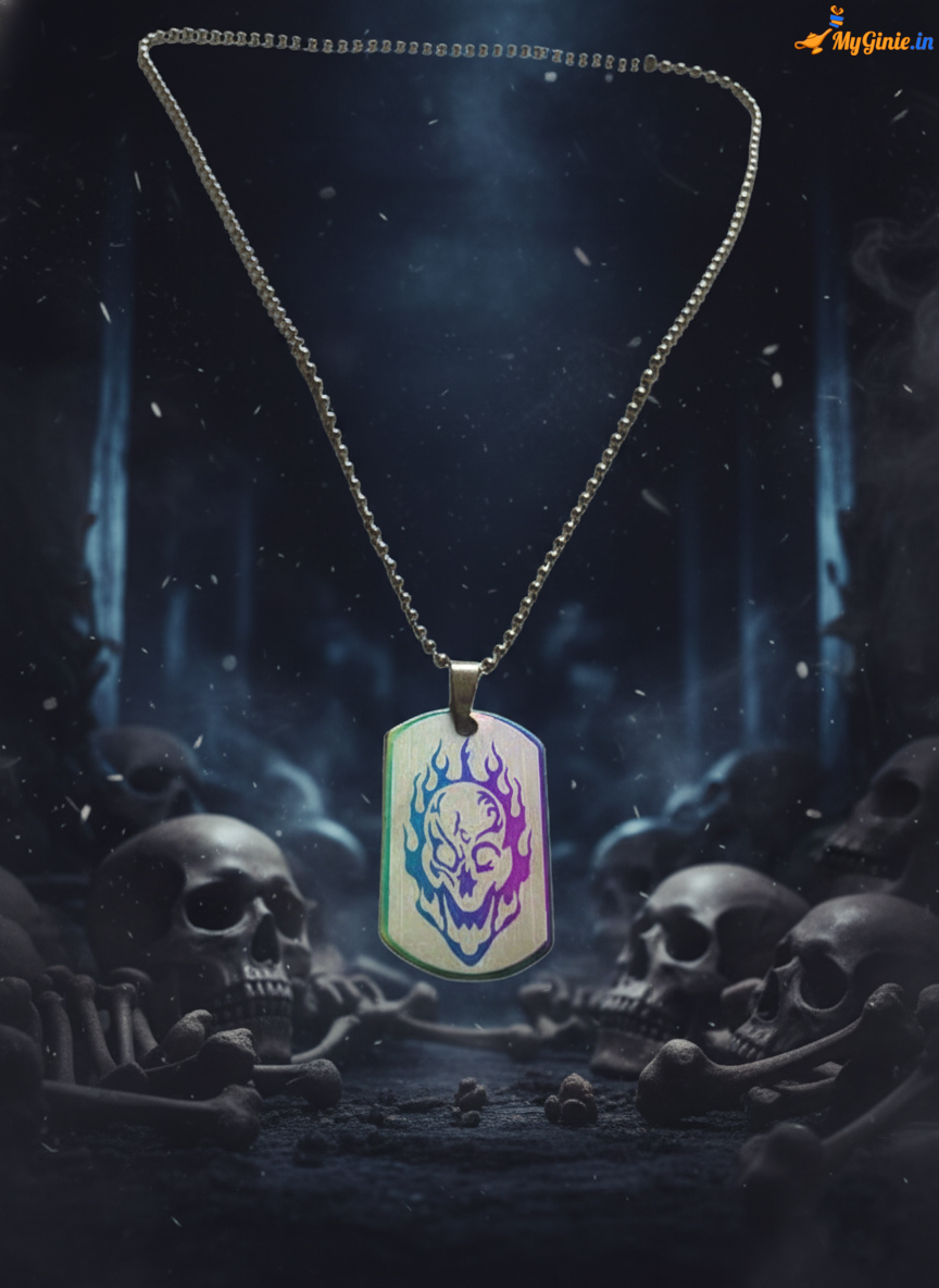Multi Colour Skull On Fire locket chain For Bikers Unisex