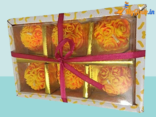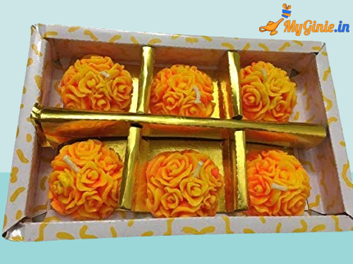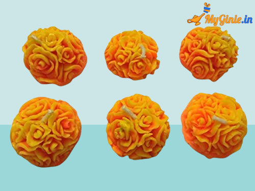 - Rose Candles Pack of 6 designer Rose Flower Ball Shape Candle Colour- Orange
