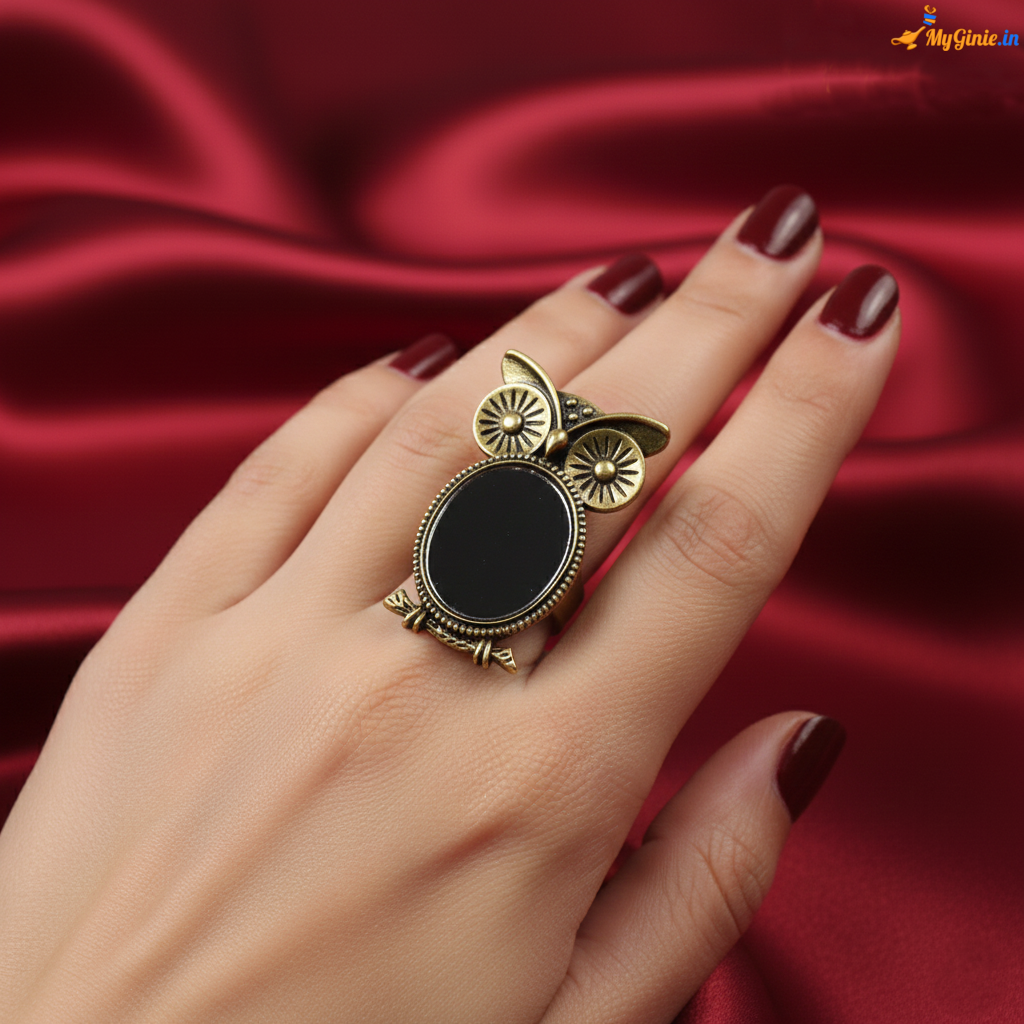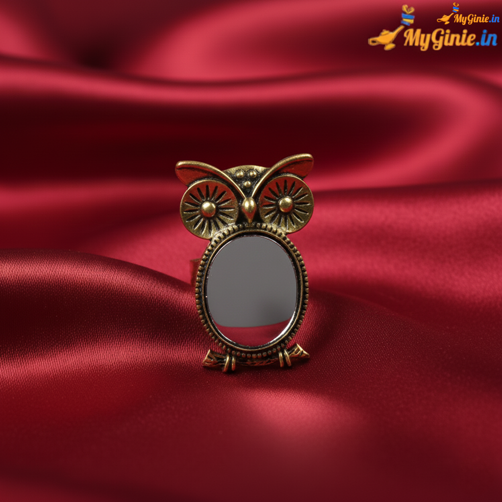 Owl Shaped Mirror Ring Golden Free Size. Perfect for Parties, Dinner, Dance, Movies, Birthdays, Anniversary, Gifting, Brunch, Clubbing, etc.