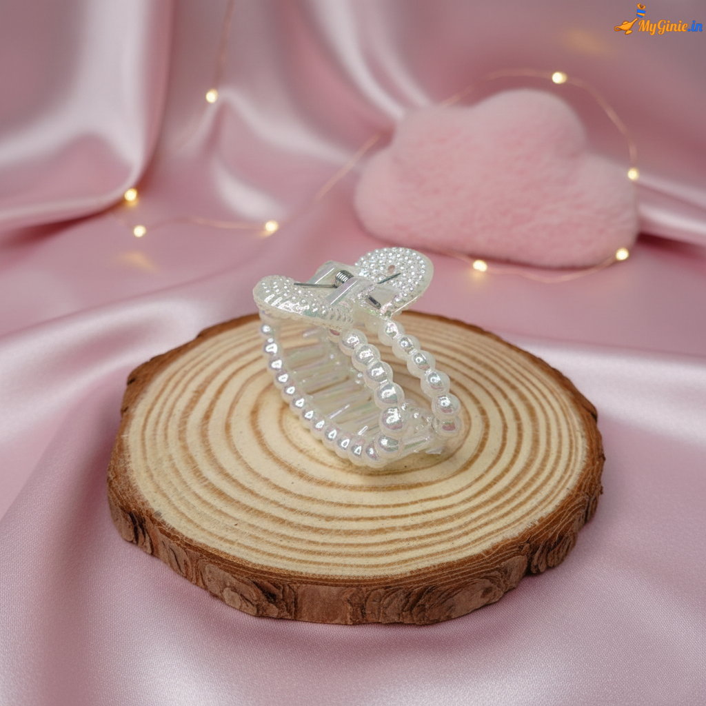 Enhance your hairstyle with this elegant white pearl rectangle hair clutcher. Designed with a classic rectangular shape and pearl detailing, it adds a touch of sophistication while providing a strong and comfortable grip.