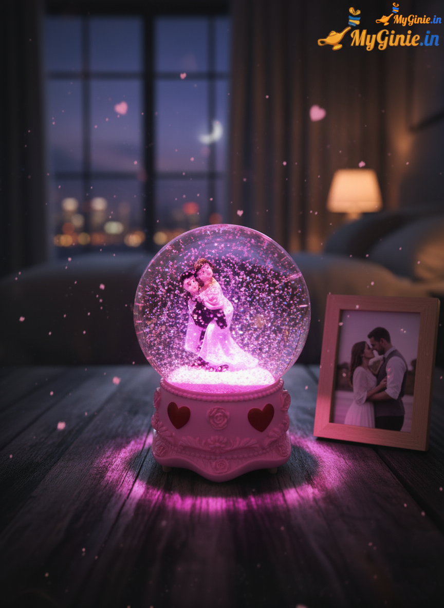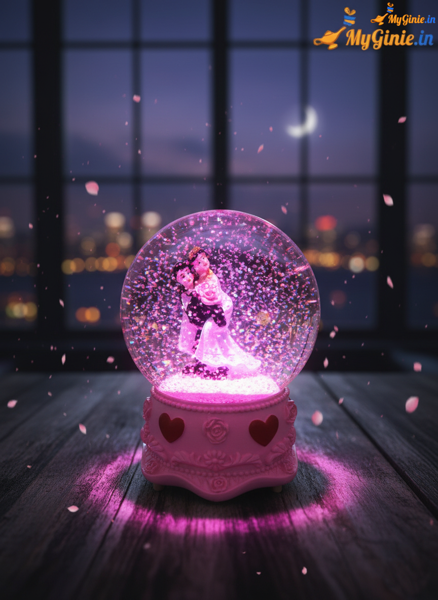 Romantic Couple Musical Love Crystal Glass Globe With Music Pink Colour