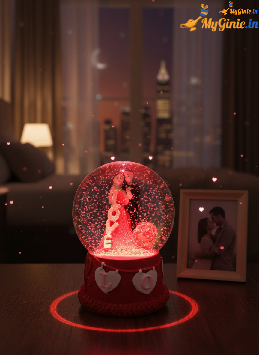 Romantic Couple Musical Love Crystal Glass Globe With Music Red Colour