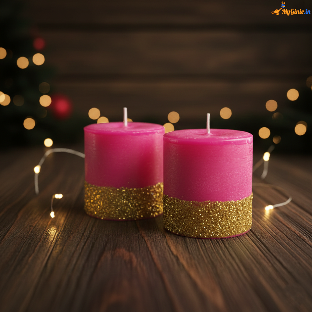 Scented Pure Wax Pillar Candles, Highly Fragranced (Rose),Pack of 2 Scented Pillar Candles