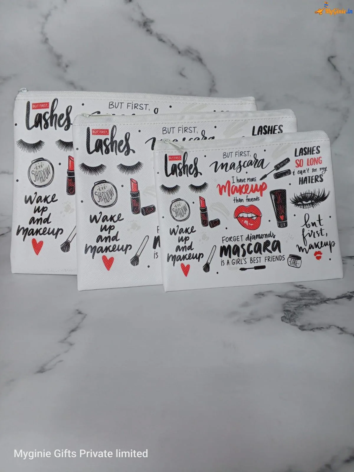 Set of 3 Make Up Print Pouches for Travel Makeup Pouches for Girls,Makeup Organiser Bags,Travel Toiletry Bags