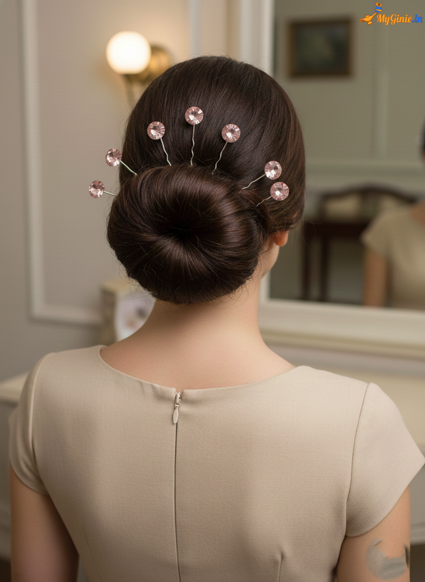 Single Light Pink Stone Silver Hair Bun Pins For Women and Girls – Set of 12