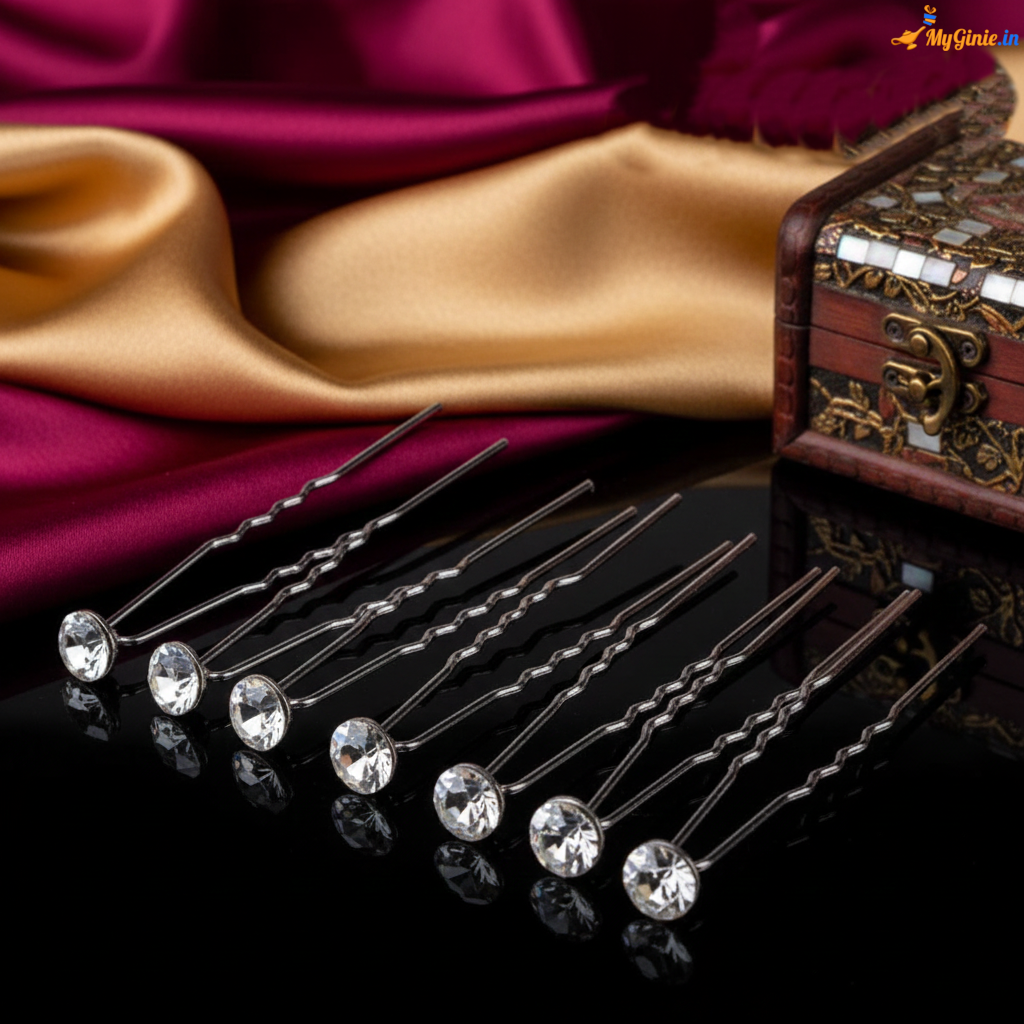 Single Silver Stone Silver Hair Bun Pins For Women and Girls – Set of 12