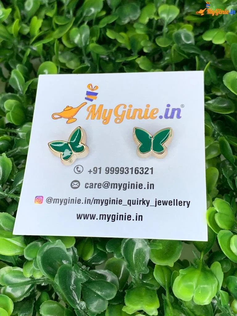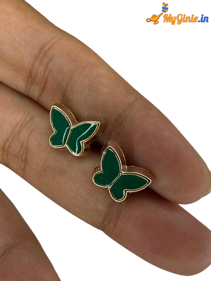 Small Butterfly Earring Stud Green Colour For Girls