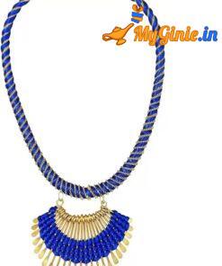 Stones Studded Long Sleek Necklace With Earring Jewellery Set For Women Blue