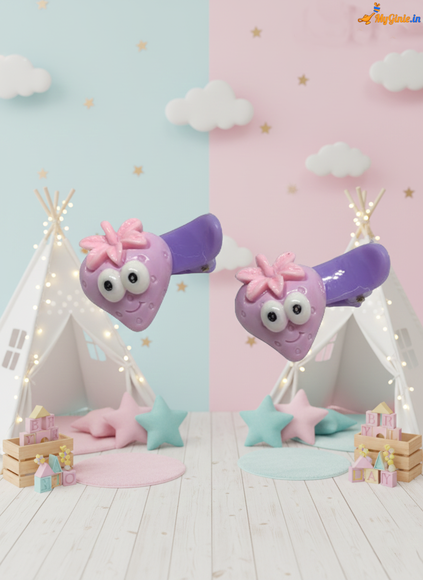 Strawberry Styled Wonderful Hair Clip/Side Pin Pair Purple
