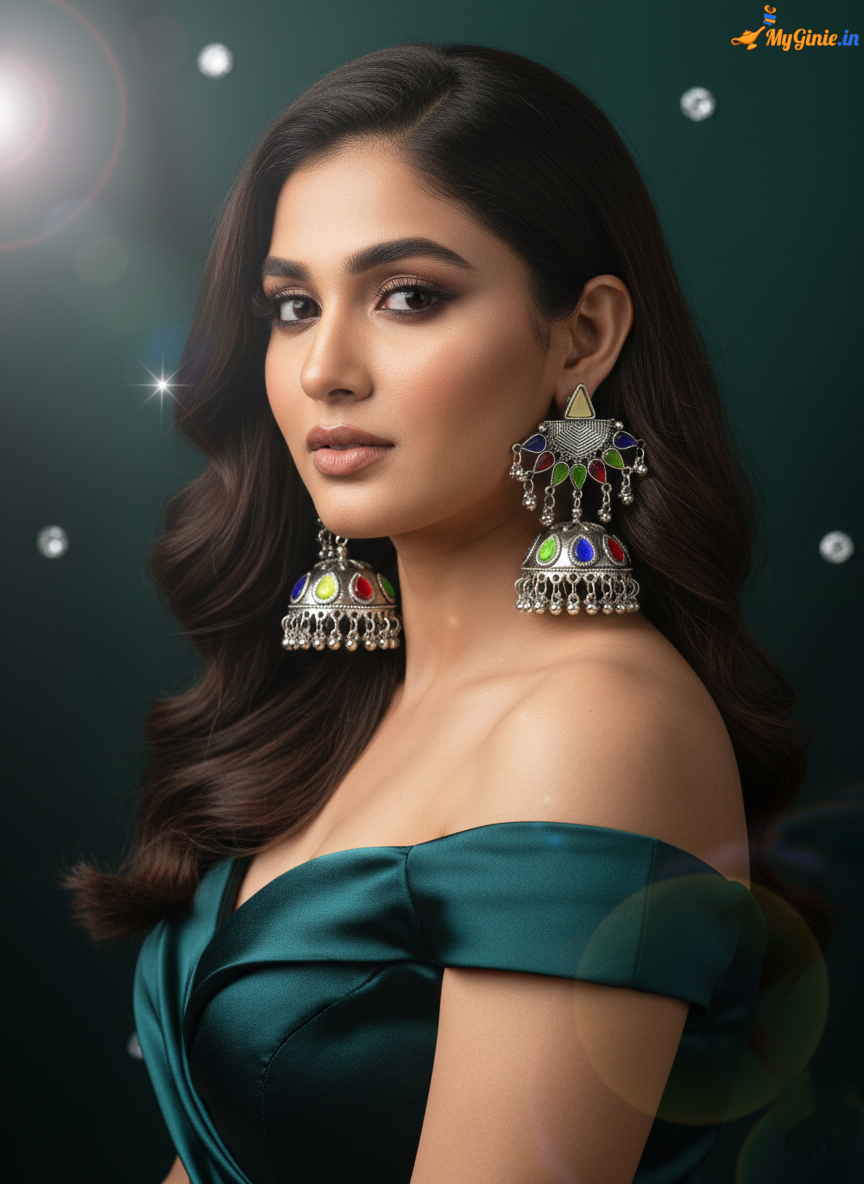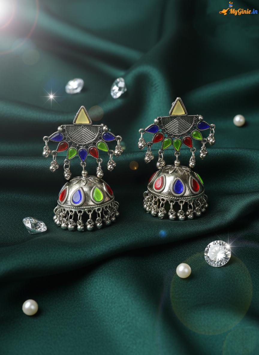 Studded Afghani Tribal Jhumka Earring With Mirror Work For Women