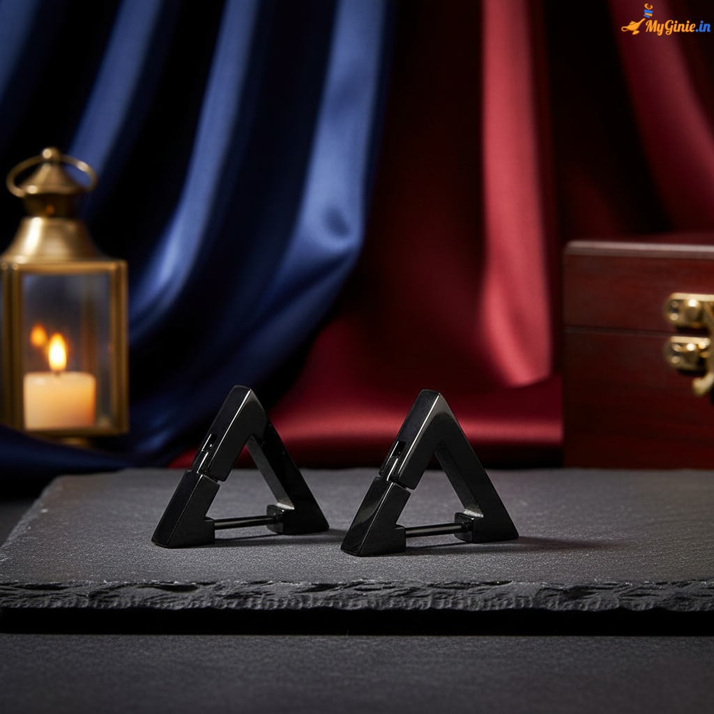 Triangle Punk Black Colour Studs Earrings For Men