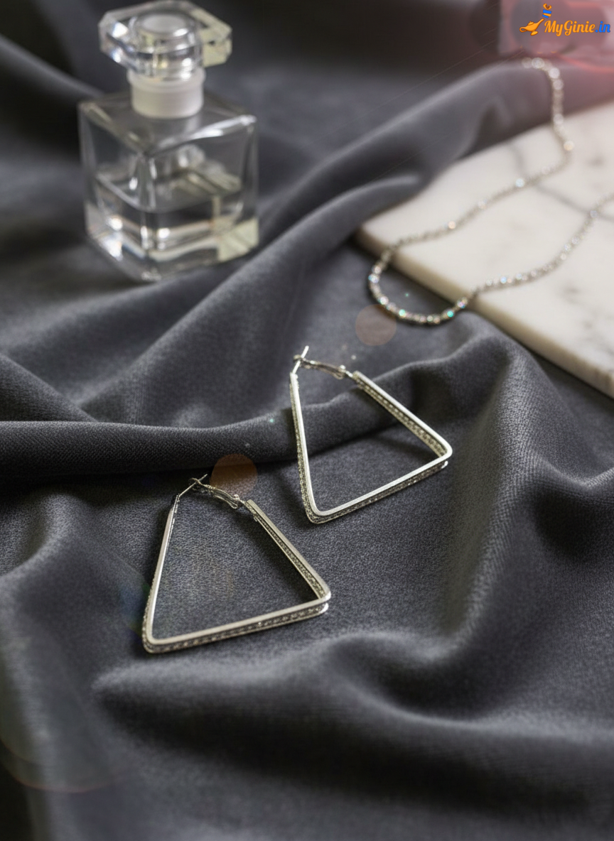 Triangular Hoops Earrings Silver