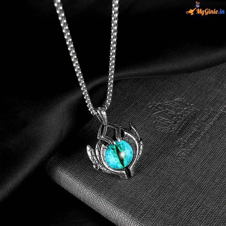 - A powerful, retro pendant with a inlay of blue dragon eye stone, this classic design suits all styles. Representing power and strength, this pendant is a reminder to stay six moves ahead as you checkmate your competition. This bold and thick pendant is an ideal gift for any man that wants to make a statement.