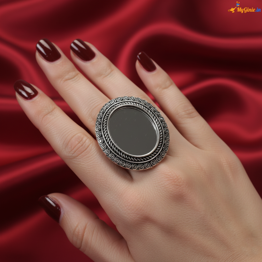 Wave Sheesha Ring Silver Free Size. Perfect for Parties, Dinner, Dance, Movies, Birthdays, Anniversary, Gifting, Brunch, Clubbing, etc.
