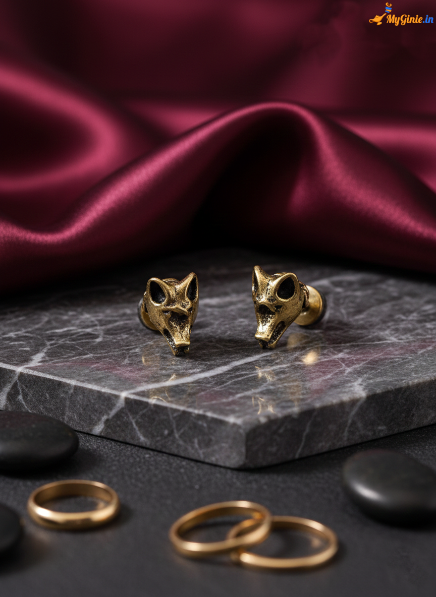 - Myginie Gifts Private Limited presents Golden Colour Wolf Face Studs, Good Quality, Lightweight and Pretty, Clip-On Hoop Earrings, Makes your Fashion Amazing, 1 Pairs a Set
