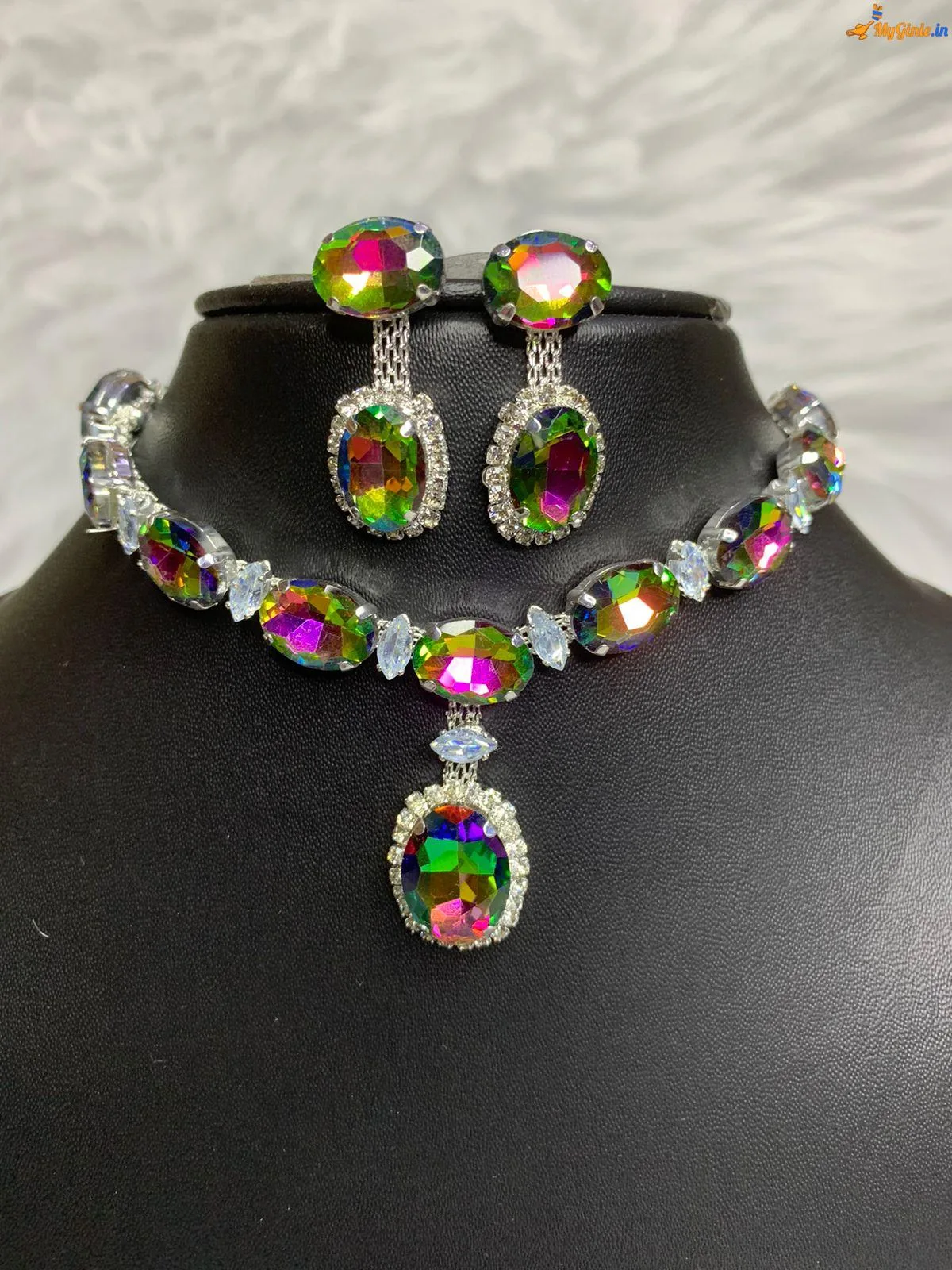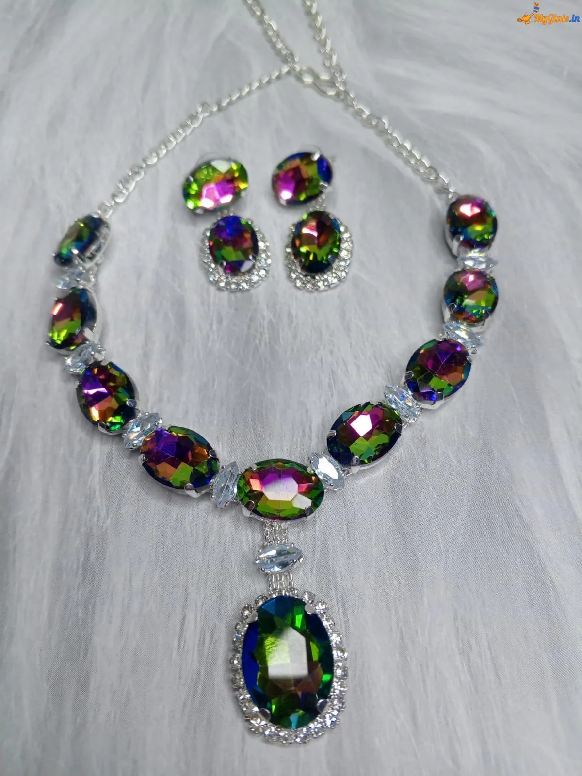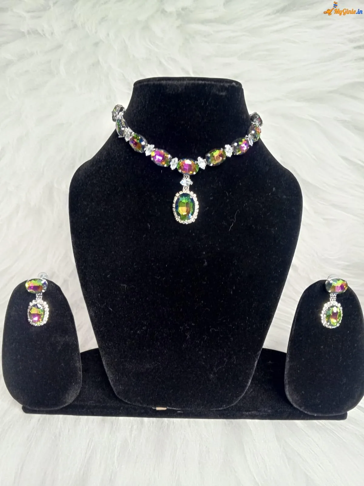 Zirconia Stones Necklace For Women With Earrings Dark MutliColour