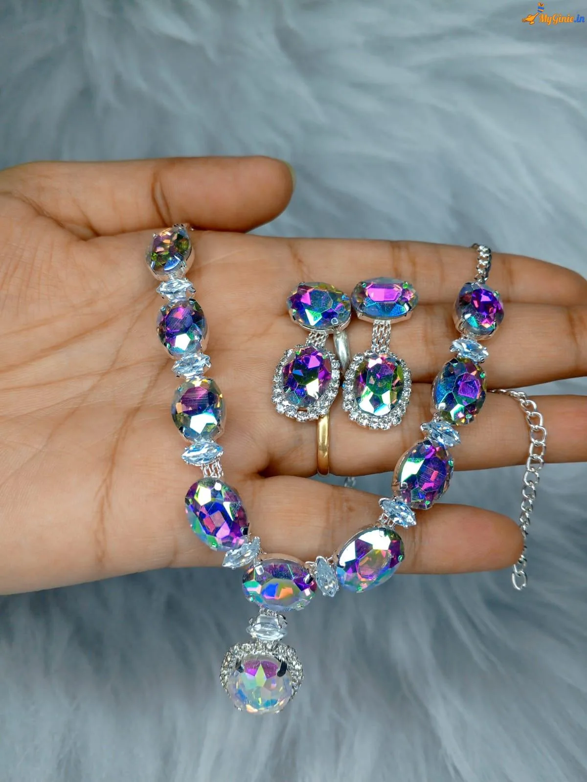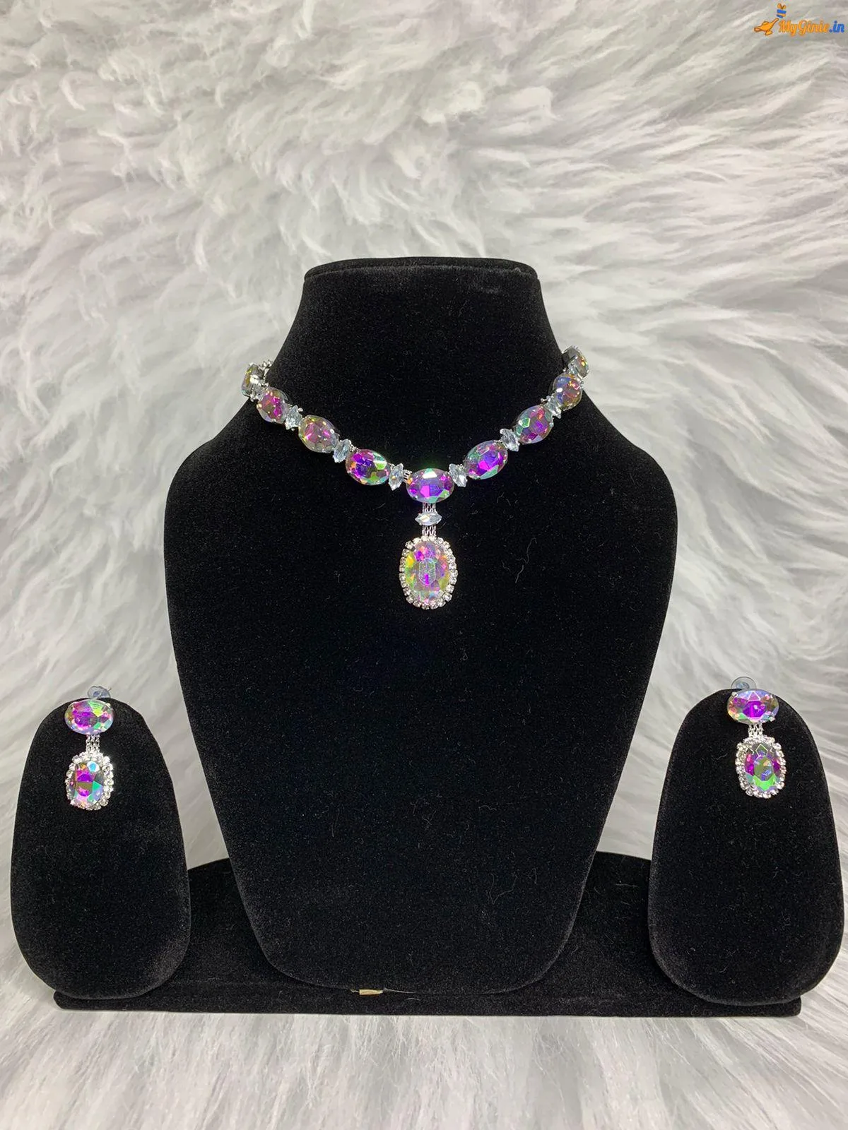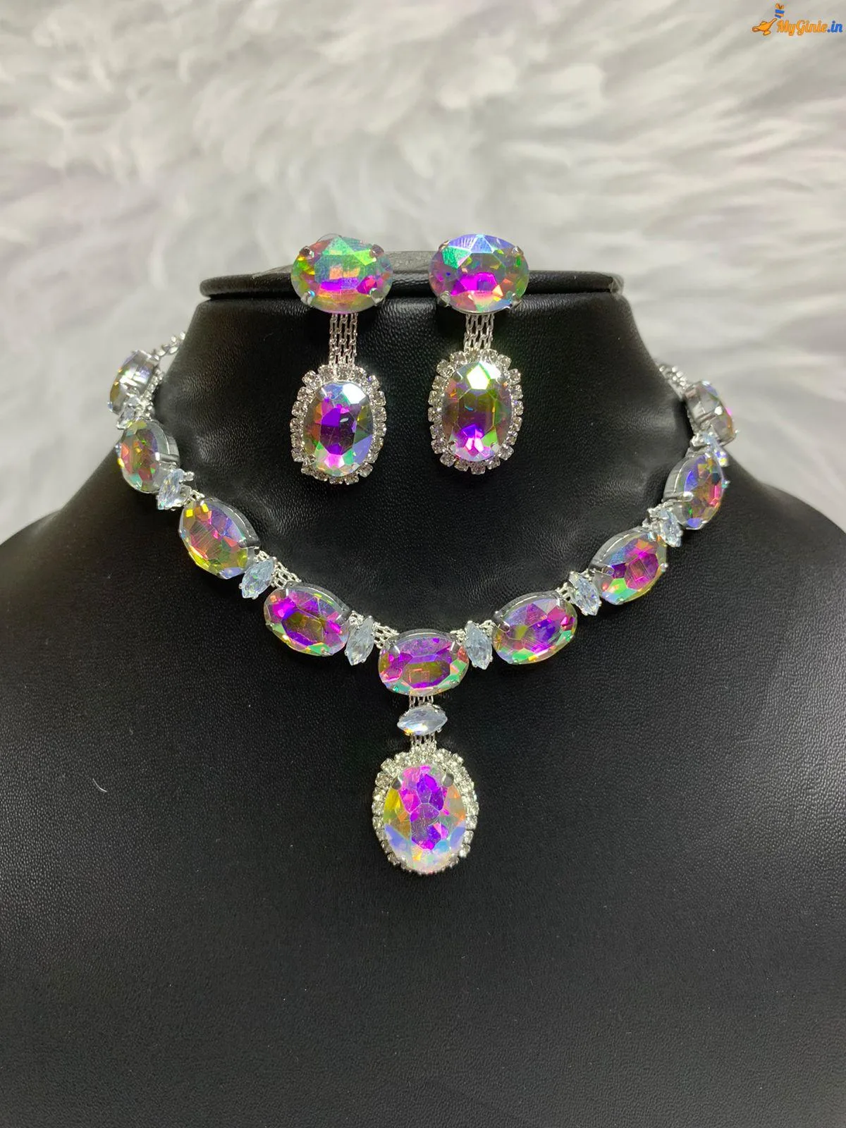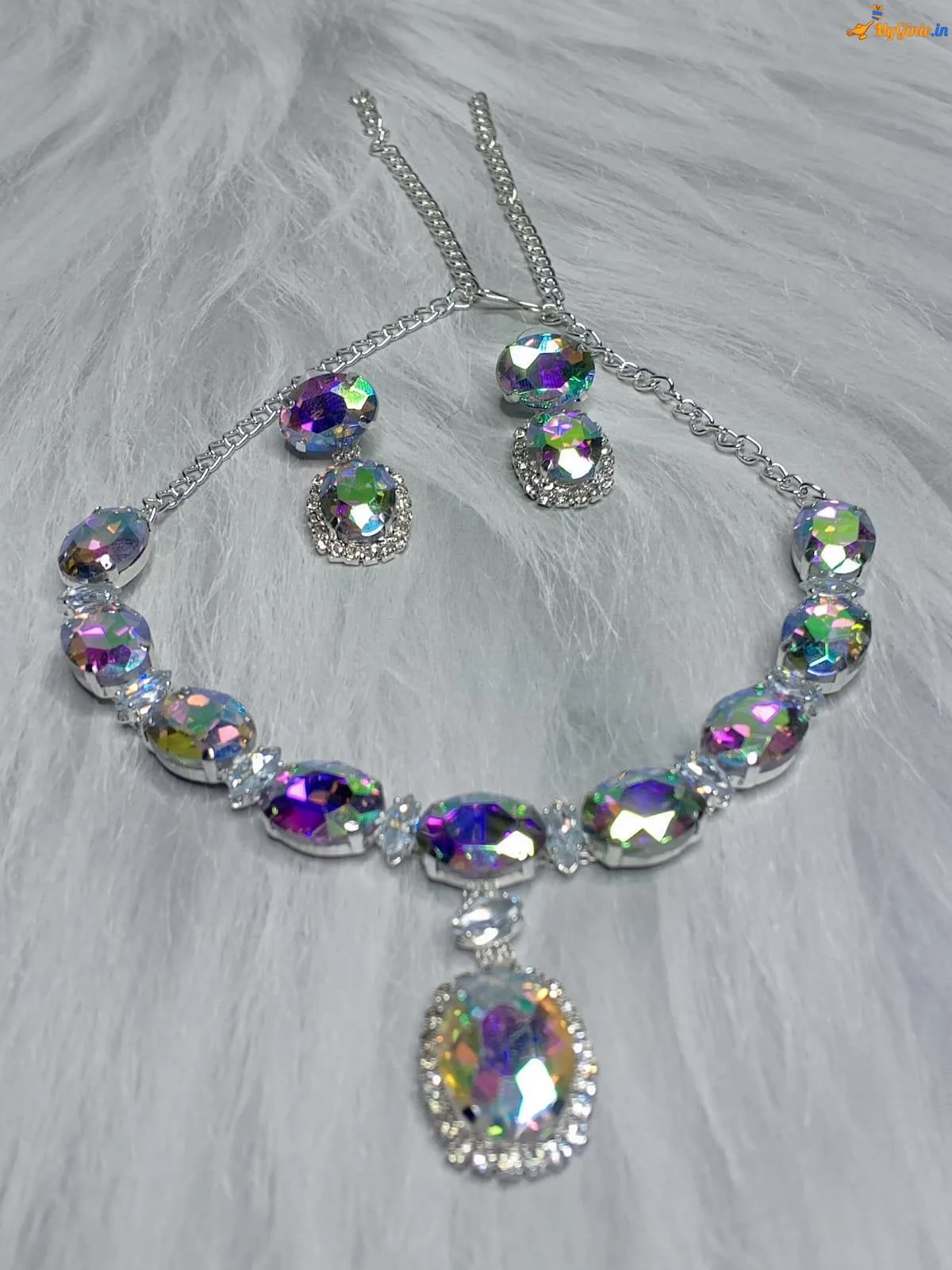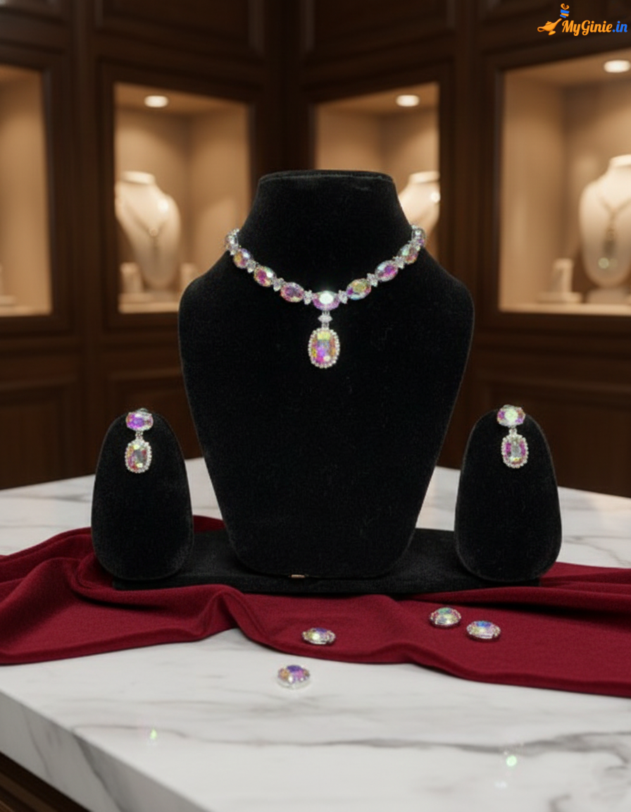 Zirconia Stones Necklace For Women With Earrings Light MutliColour